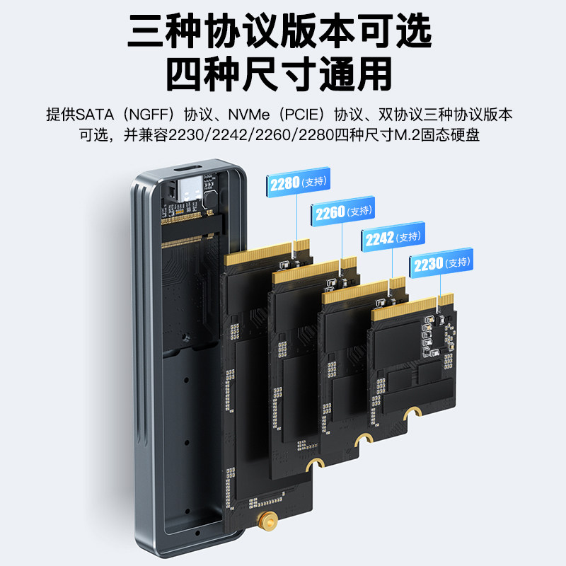 迷虎M.2固态硬盘盒NVMe NGFF双协议typec外接USB3.2移动硬盘盒子