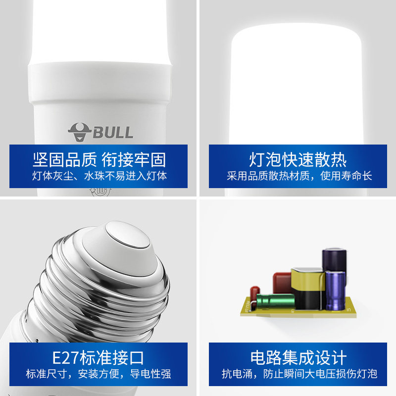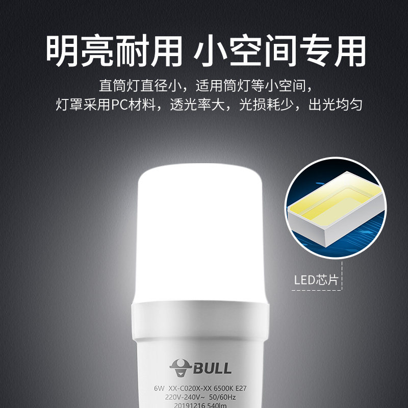 公牛led灯泡超亮e27大螺口家用照明节能筒灯6W/9.5W旋口直筒球泡