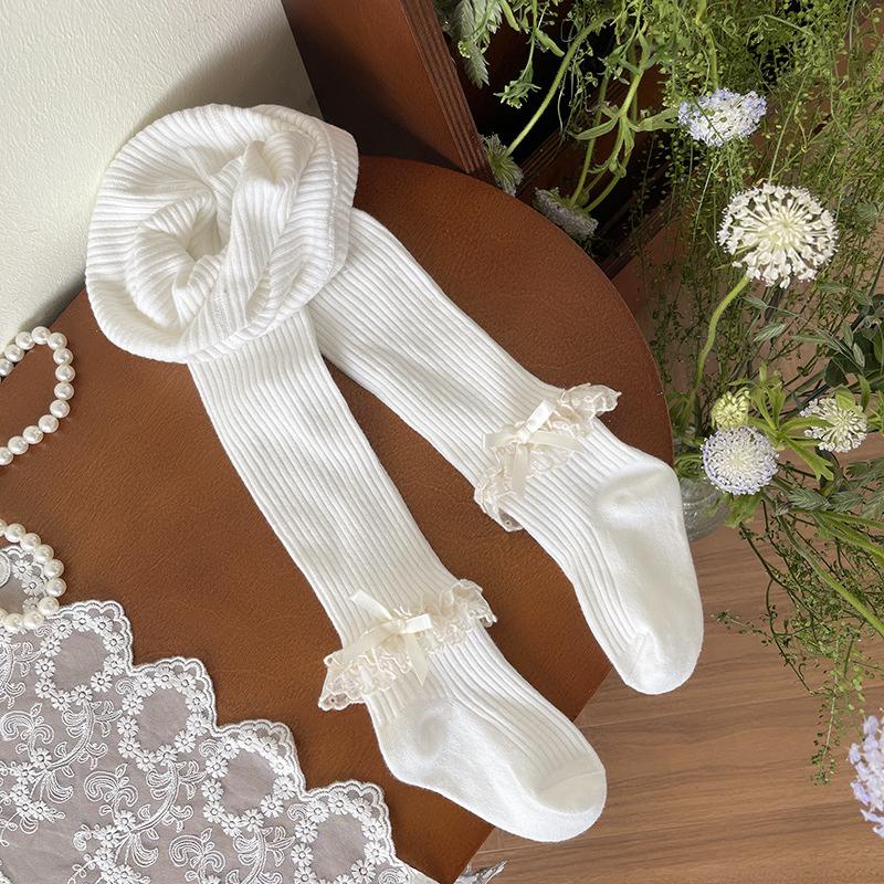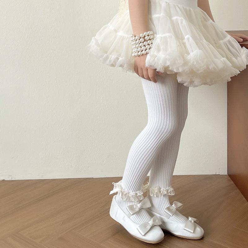 女童白色袜子春款纯棉儿童公主风连裤袜韩版洋气女孩宝宝打底裤子