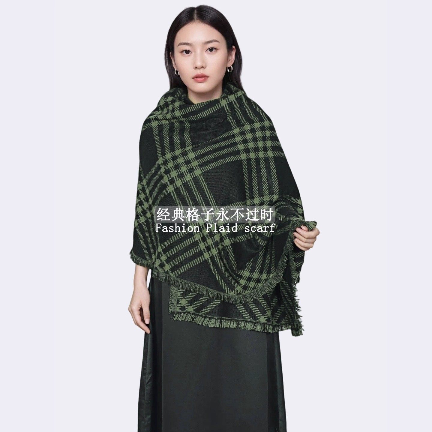 纯羊绒围巾秋冬季鄂尔多斯市保暖羊毛经典格子披肩韩系百搭双面女