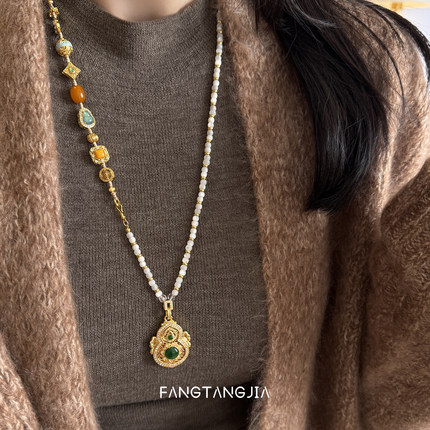 方糖家 原创多宝翡翠蜜蜡新中式葫芦长项链2026新款轻奢毛衣链女