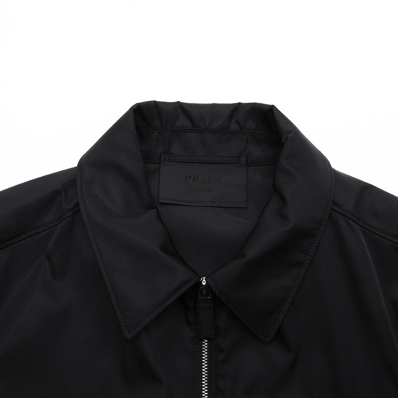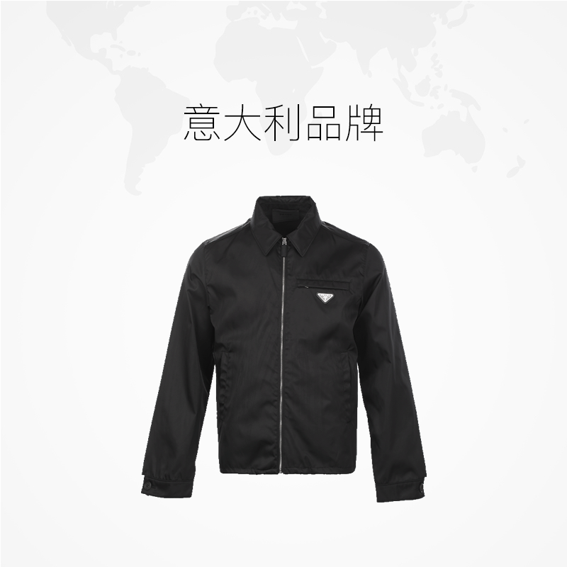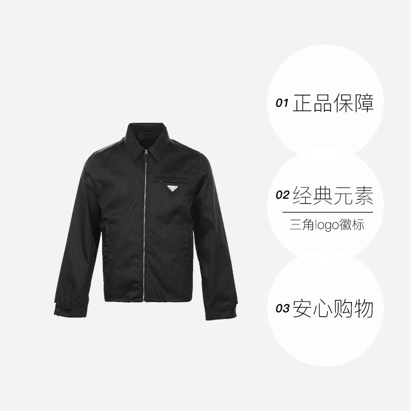 【自营】Prada/普拉达男士三角徽标纯色休闲百搭拉链翻领夹克外套