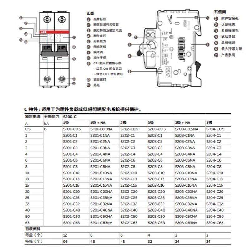 ABB空气开 关断路器S201(S202/S203)-C10-C16-C20-C25-C32-C40-C6