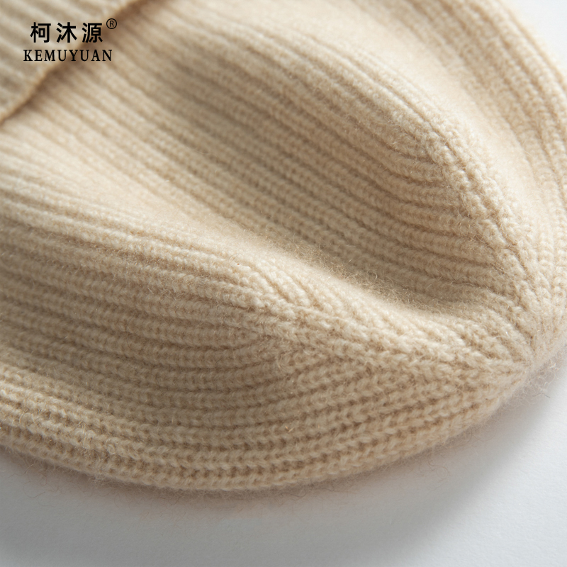 柯沐源100%纯山羊绒帽百搭圆顶帽冬季保暖加厚毛线针织男女通用帽