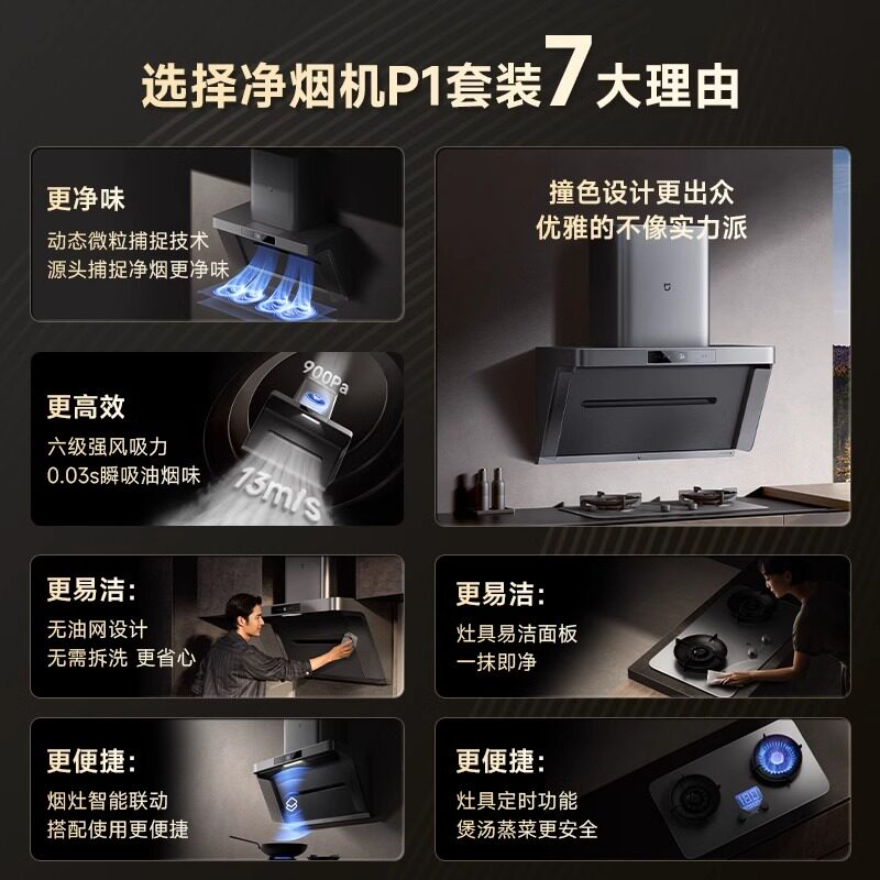 【下拉领换新补贴】小米油烟机p1米家净烟机烟灶套装抽油烟机燃气