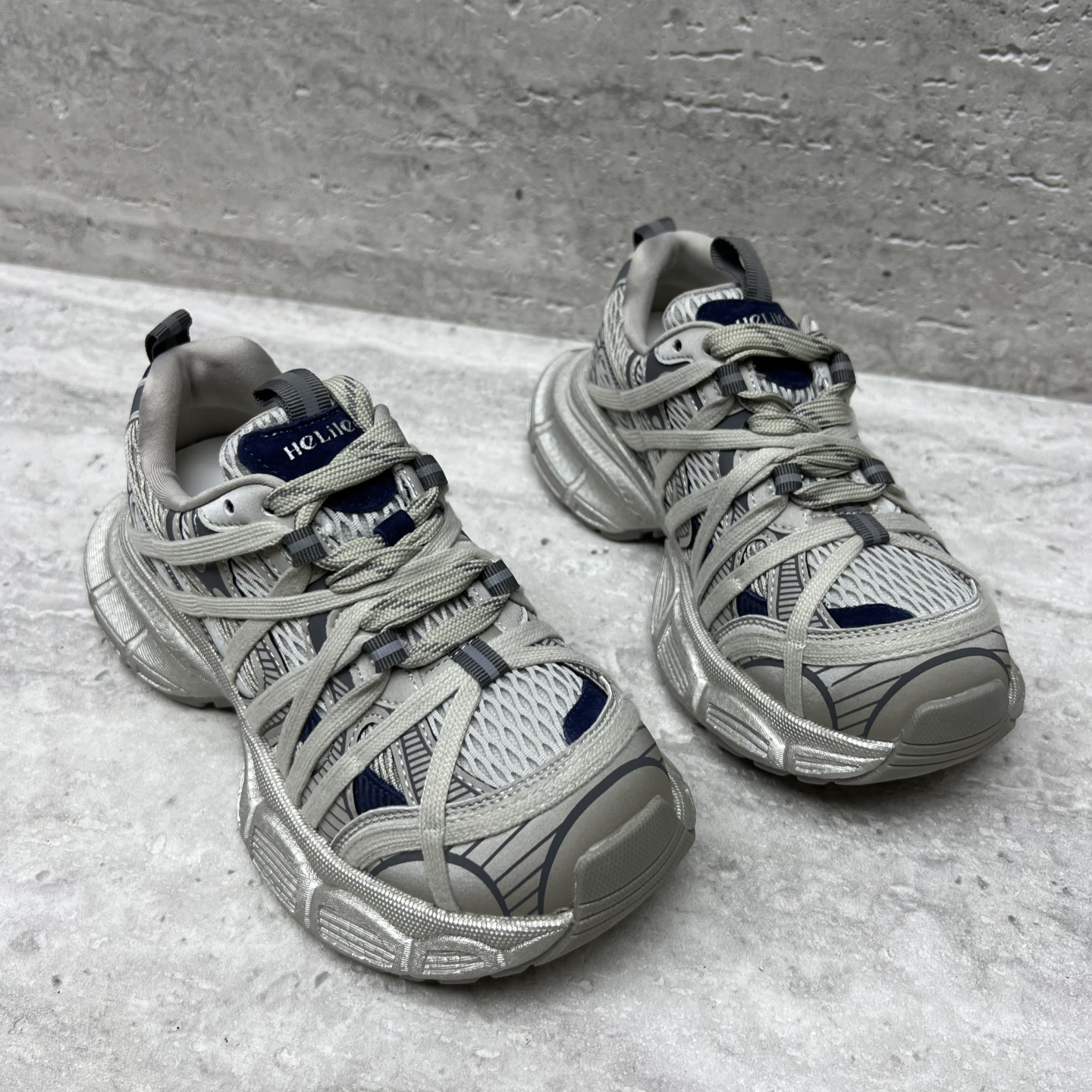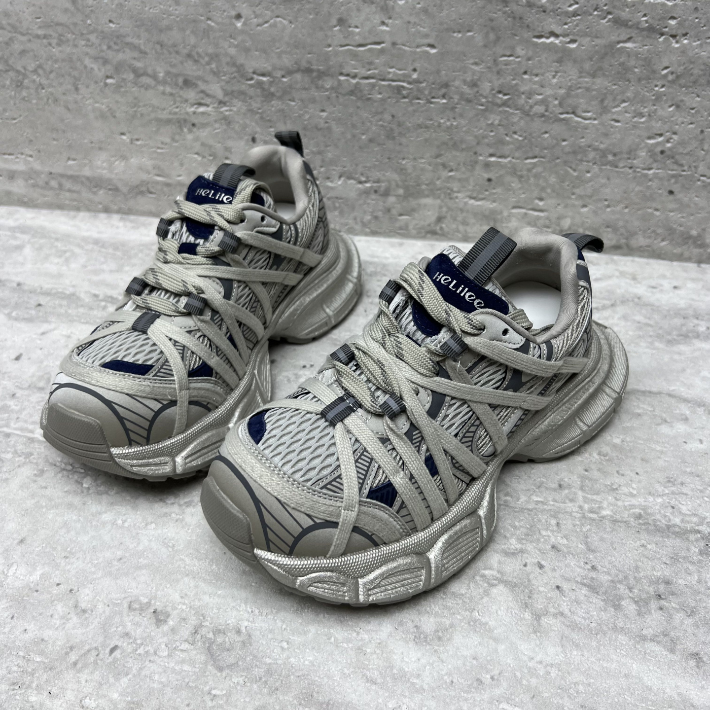 欧洲站真皮女鞋2025秋新款欧货厚底系带网面拼色运动鞋休闲老爹鞋