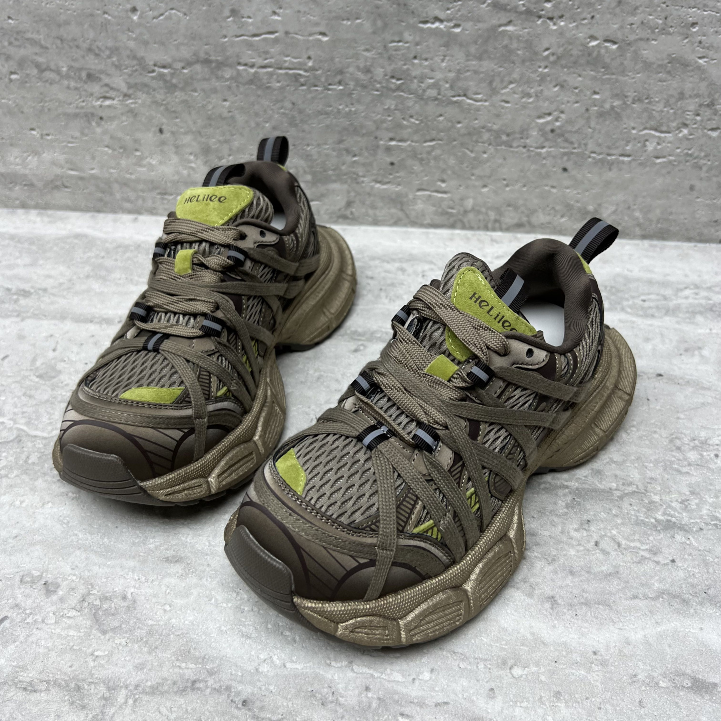 系带网面拼色运动鞋休闲老爹鞋女