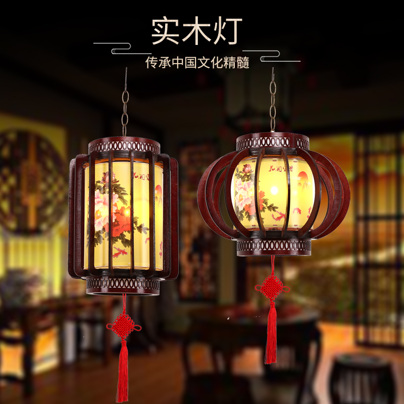 新年春节高档LED实木灯笼新款带电旋转灯笼室内阳台节日喜庆装饰