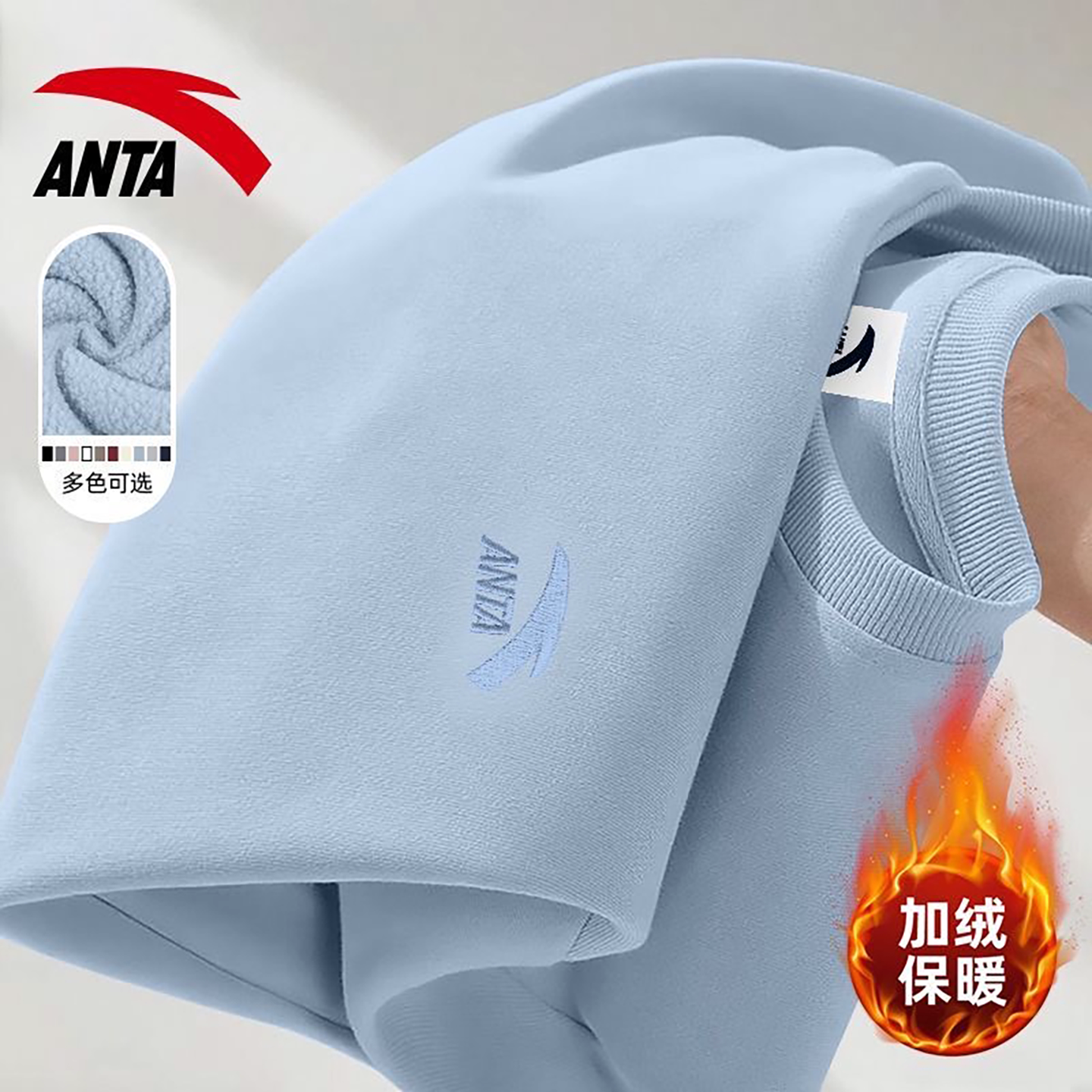 安踏粉色卫衣女春秋新款加厚保暖套头衫女装内搭休闲时尚运动长袖