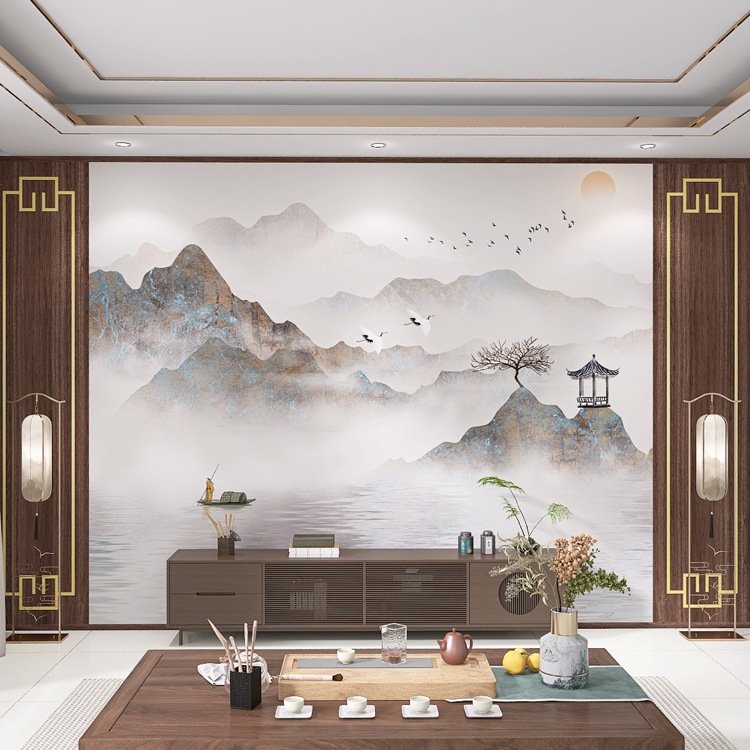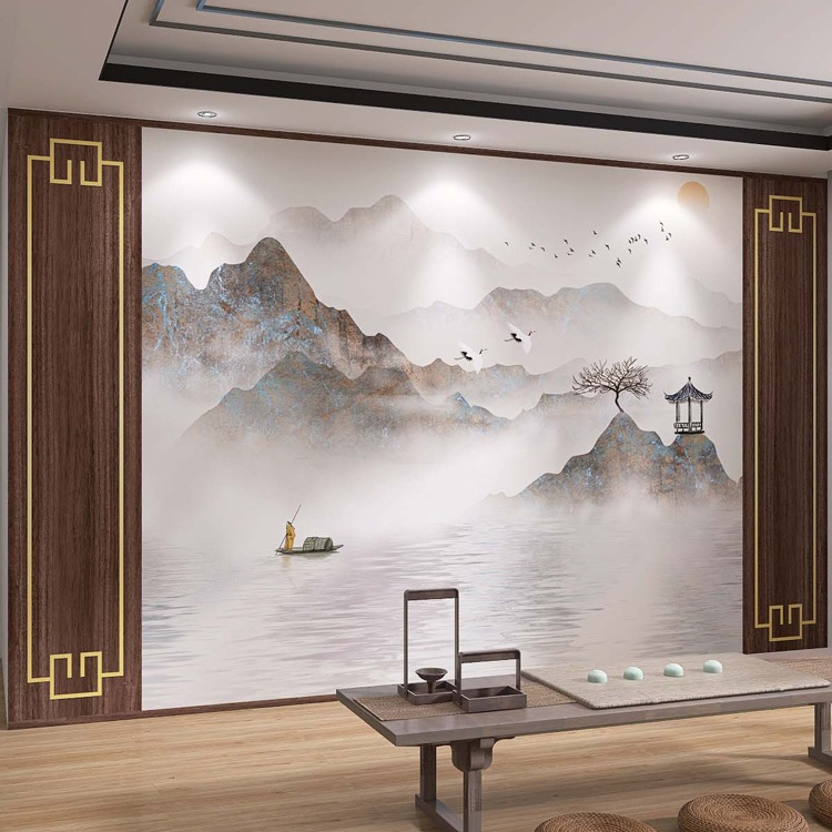 壁画3d立体山水画电视背景墙壁纸客厅墙纸无缝墙布影视墙壁布