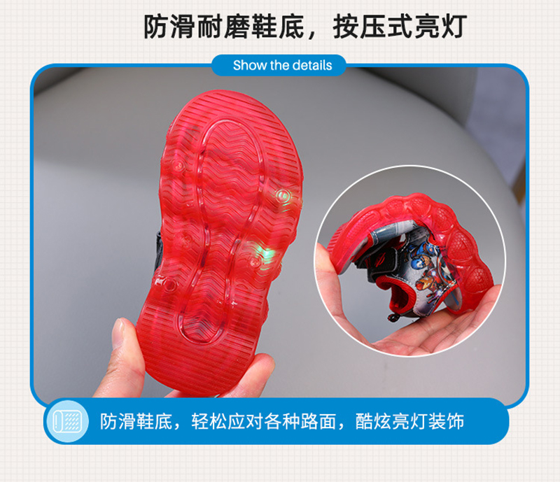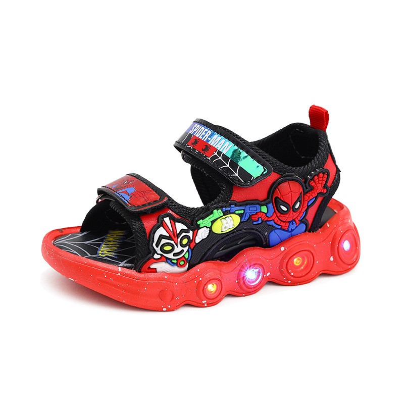 夏季儿童闪灯运动凉鞋男童卡通钢铁侠发光沙滩鞋蝙蝠侠蜘蛛侠中小