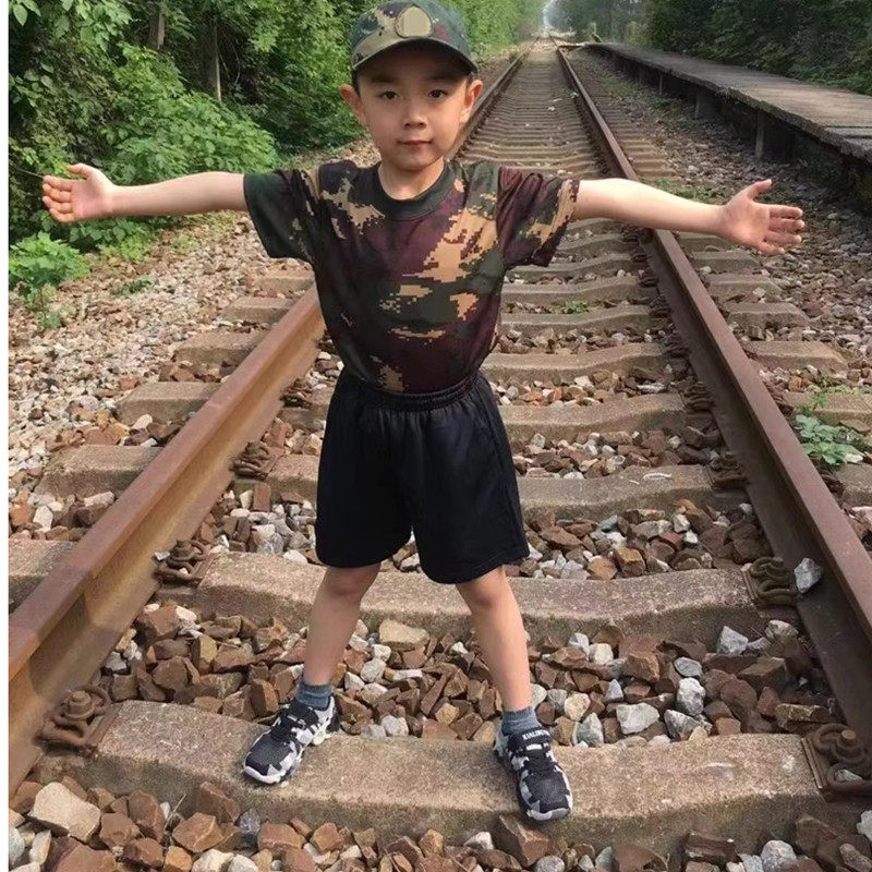 儿童迷彩短袖体能服亲子装t恤夏季夏令营学生军训服透气速干短袖