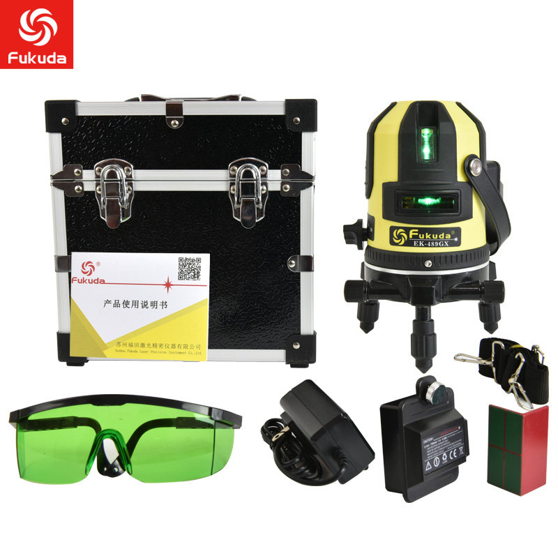 福田水平仪LD绿光5线6点带自动安平锂电489GX高精度激光投线标线