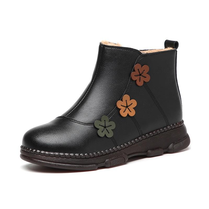 妈妈鞋冬季棉鞋加绒秋冬保暖短靴加厚女鞋防滑中老年中年冬鞋皮鞋
