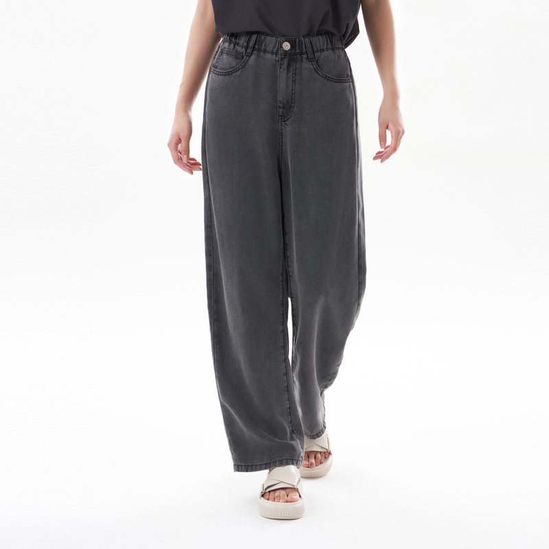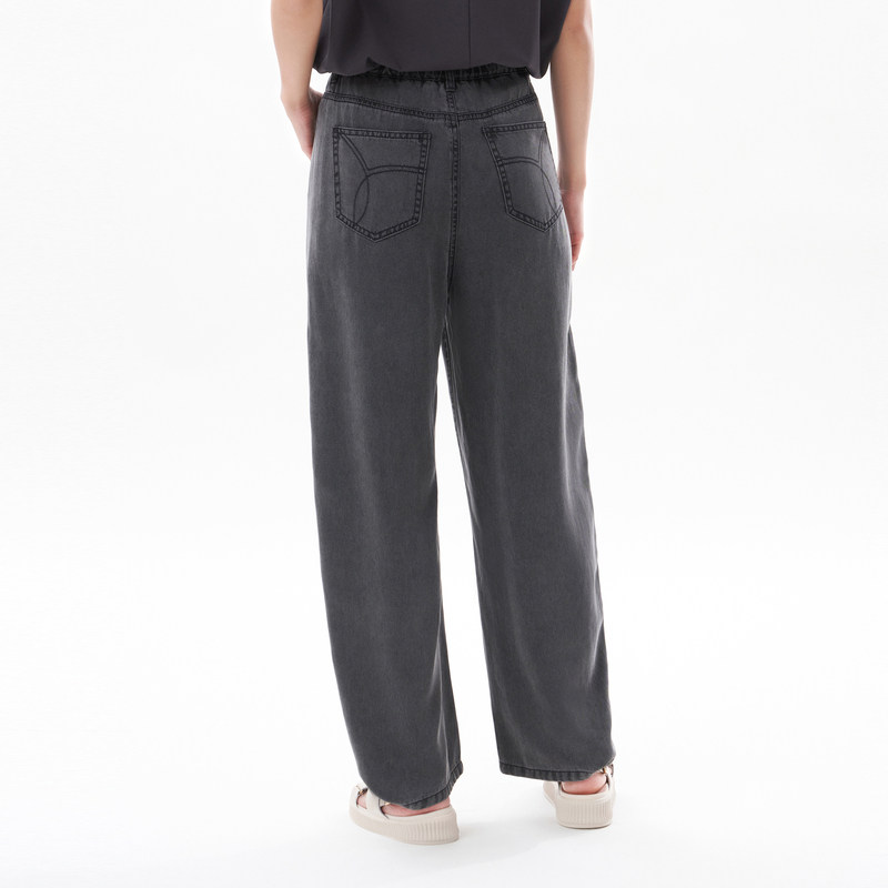 [专柜同款]Yifini/易菲天丝垂坠感深色直筒裤女香蕉裤牛仔裤夏新