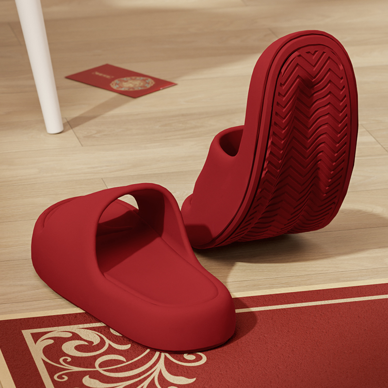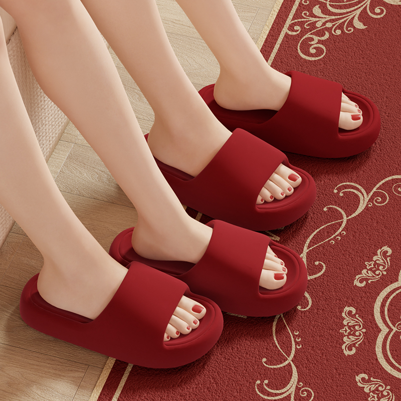 日本进口4.0cm踩屎感红色结婚喜庆eva凉拖鞋夏男女家居室内高端情