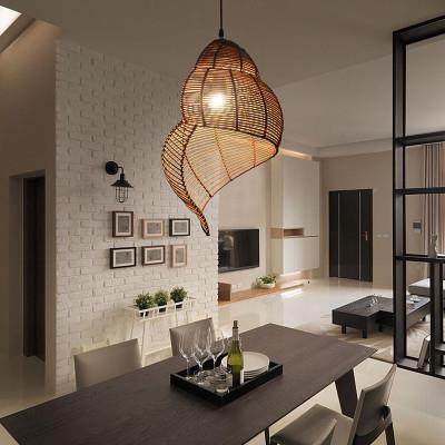韩式园风格竹编灯藤编海螺吊灯创意藤艺现代茶楼餐厅灯客厅灯具