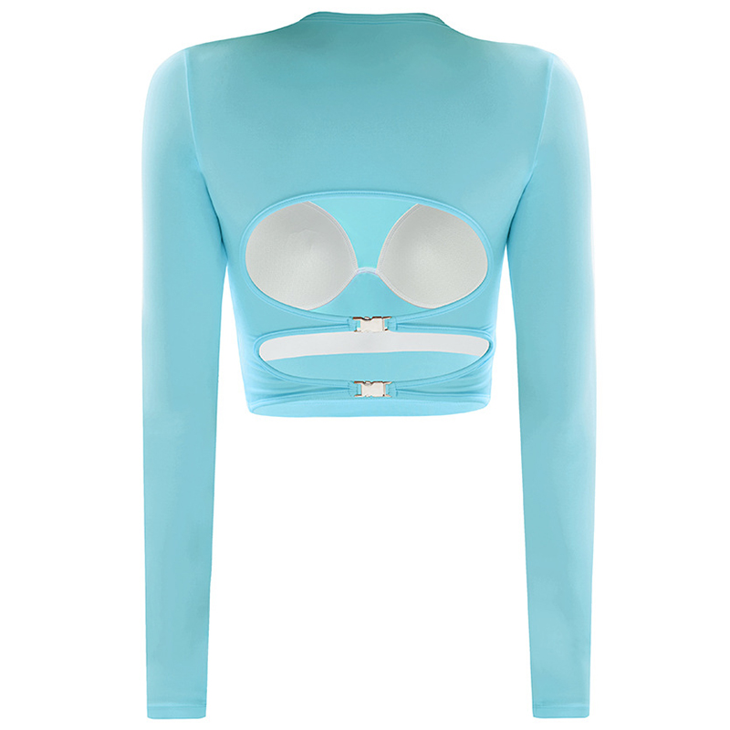 健身女孩带胸垫瑜伽服露背紧身性感普拉提长袖跑步辣妹运动上衣新