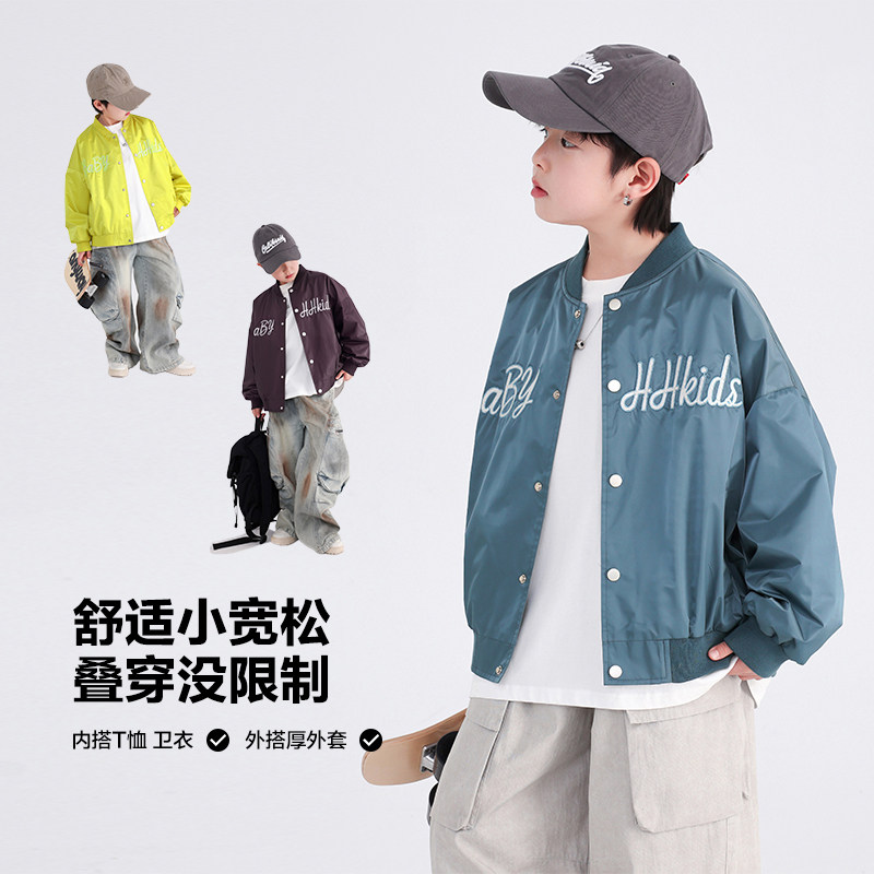 男童春秋酷帅美式街舞棒球服外套2025新款儿童男孩秋装运动夹克潮