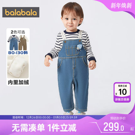【商场同款】巴拉巴拉男童背带裤套装宝宝两件套秋冬款童装衣服厚