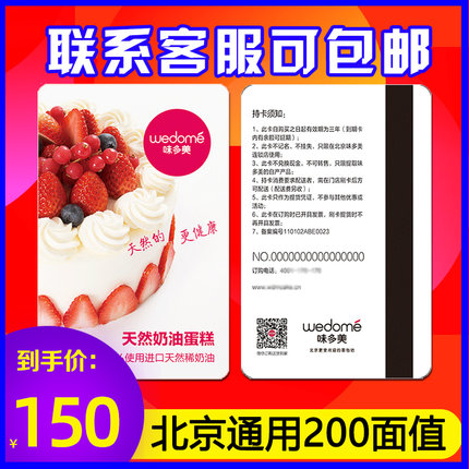礼券味多美蛋糕卡200面值储值卡现金卡提货卡面包蛋糕北京通用