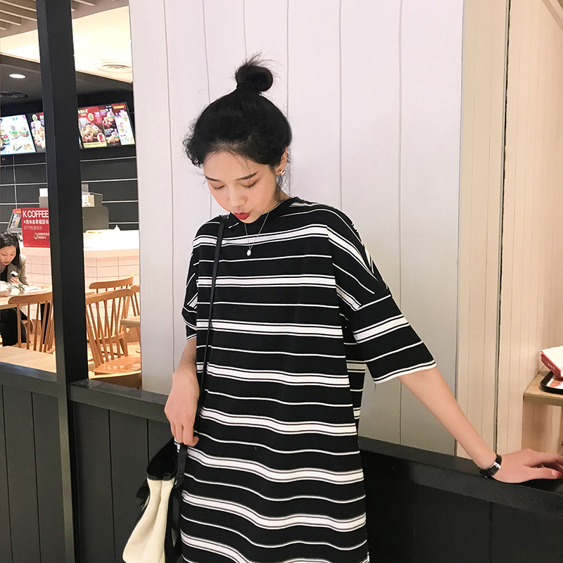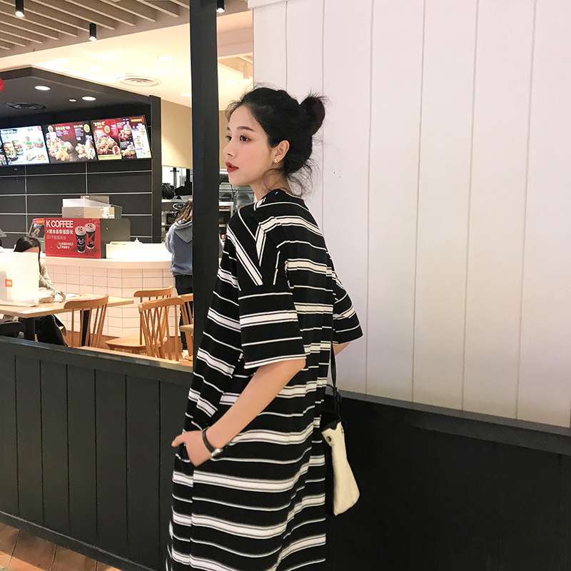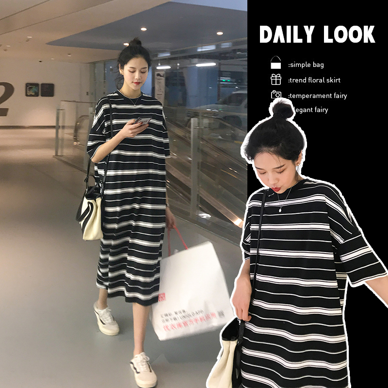 孕妇装夏装时尚韩k版显瘦短袖条纹连衣裙宽松大码裙子夏季孕妇裙