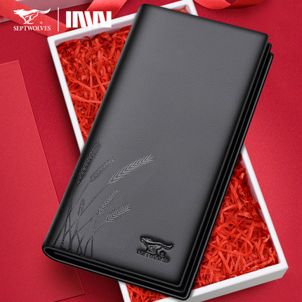 七匹狼男士长款真皮钱包纯牛皮