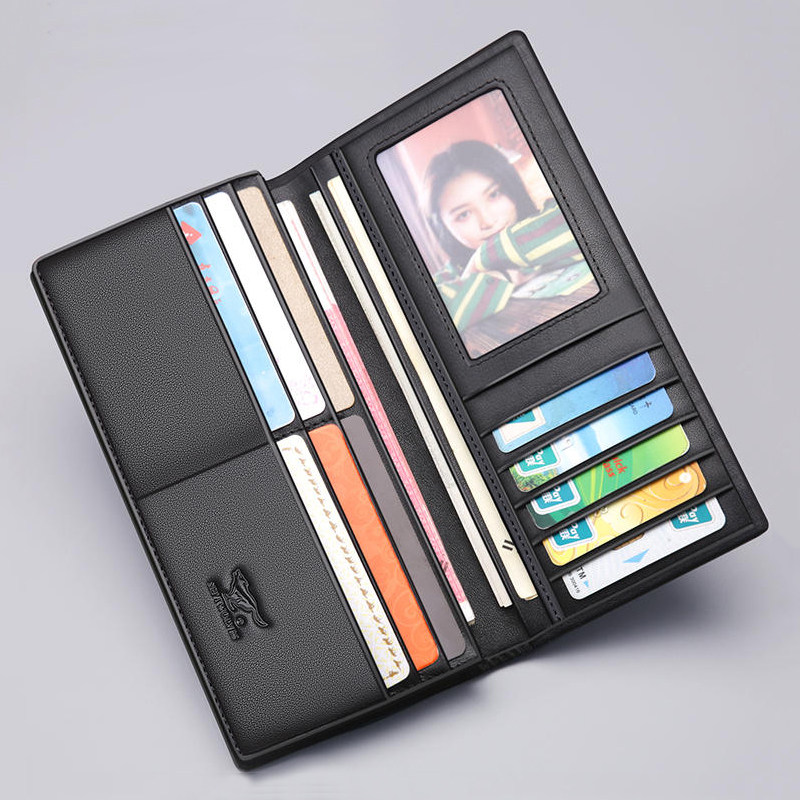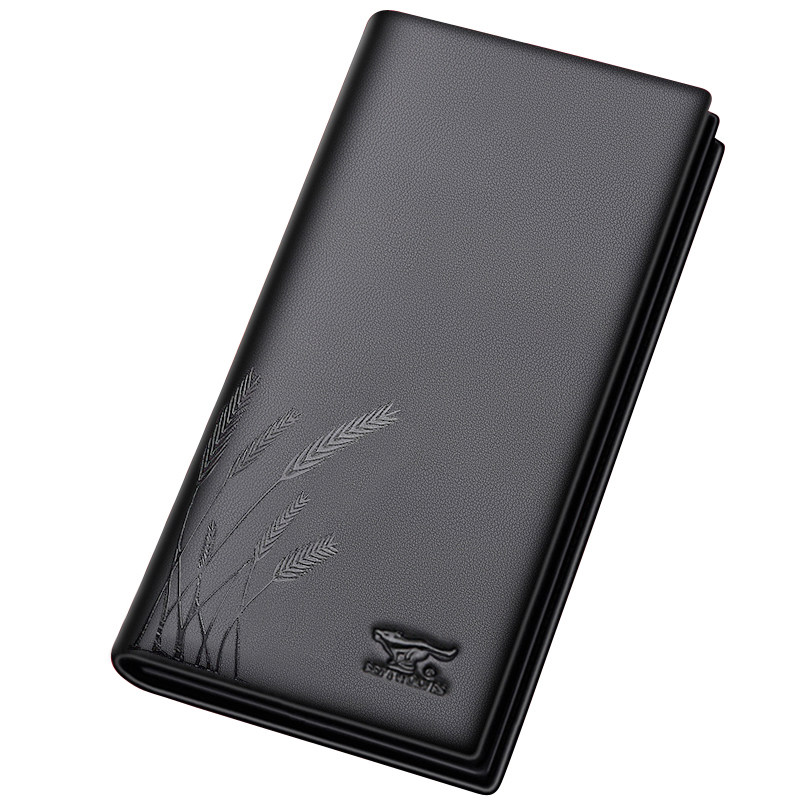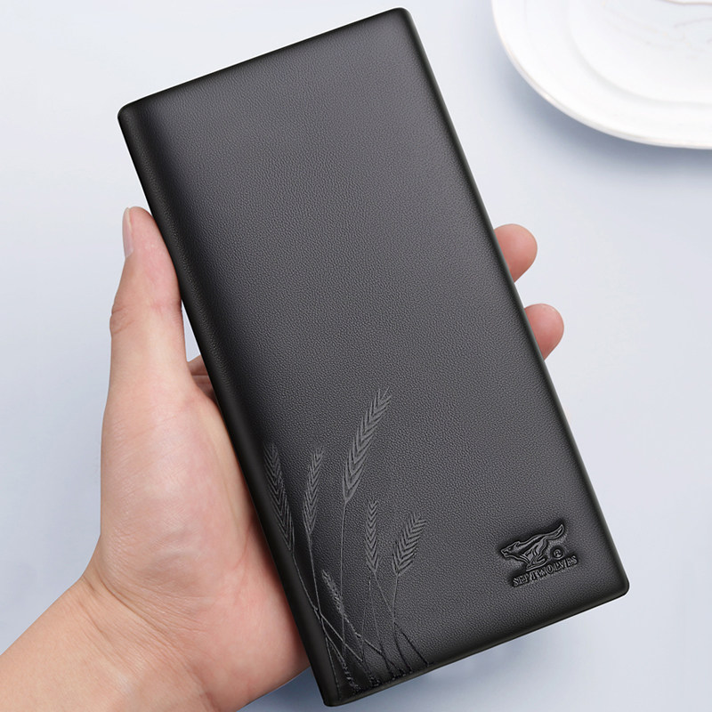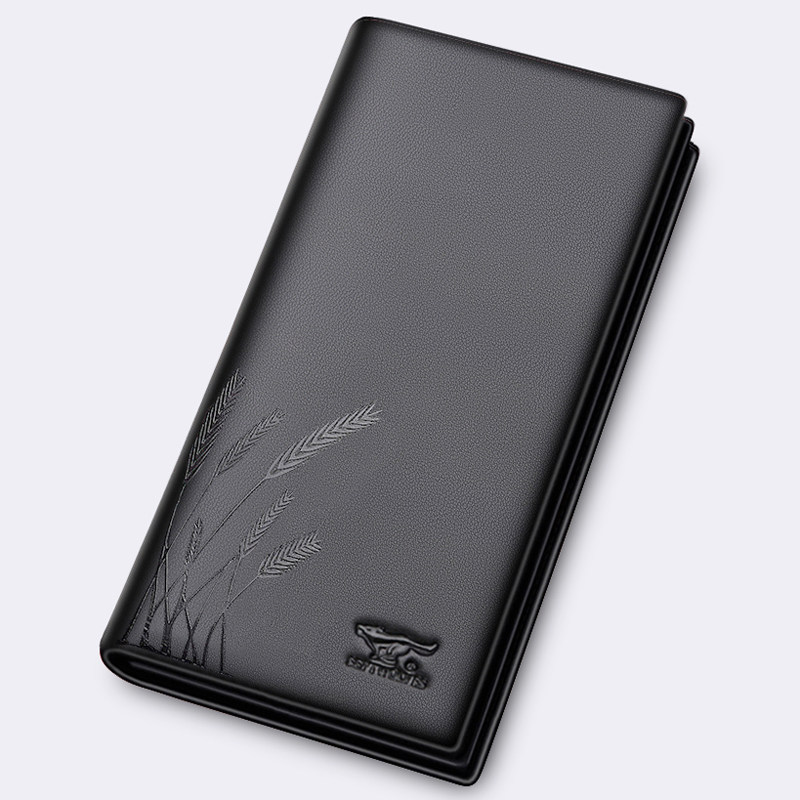 七匹狼男士长款钱包真皮直款钱夹新款麦穗印花纯头层牛皮票夹软皮