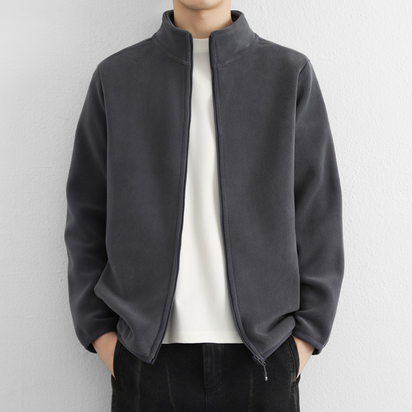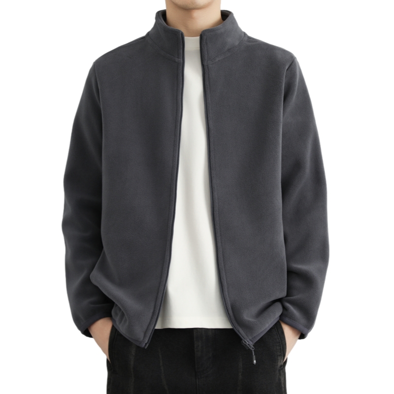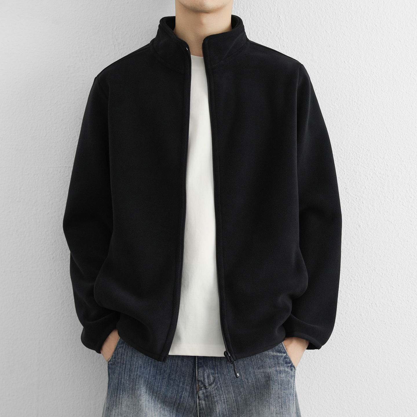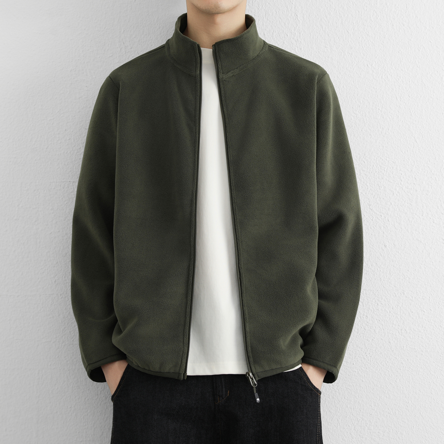 双面奥粒绒立领外套男款秋冬季加绒加厚休闲风手抓绒男装开衫夹克