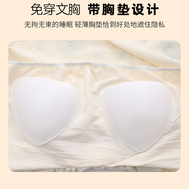 浪莎带胸垫睡衣女夏季纯棉两件套