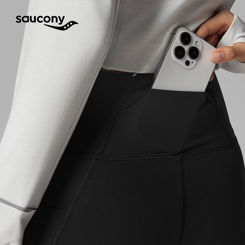 Saucony索康尼官方女子双面磨毛柔软亲肤高腰设计针织紧身长裤