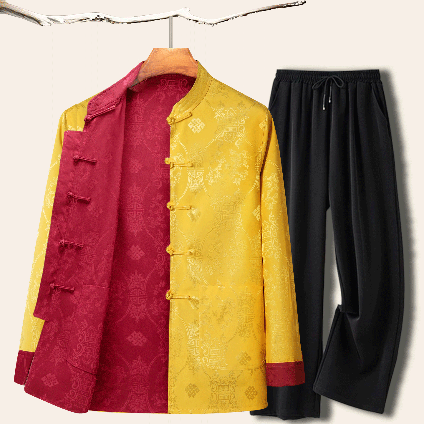 秋冬桑蚕丝唐装男双面穿爸爸套装