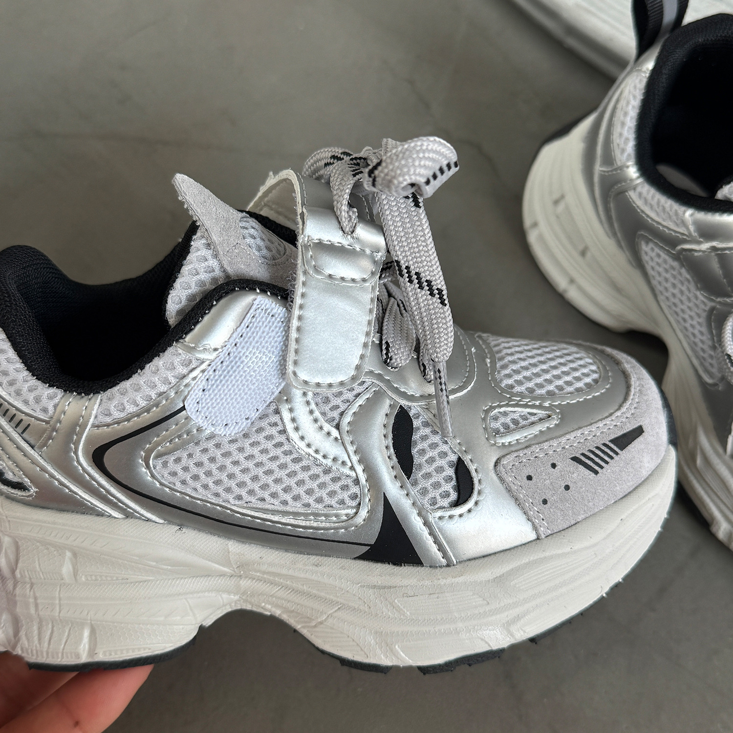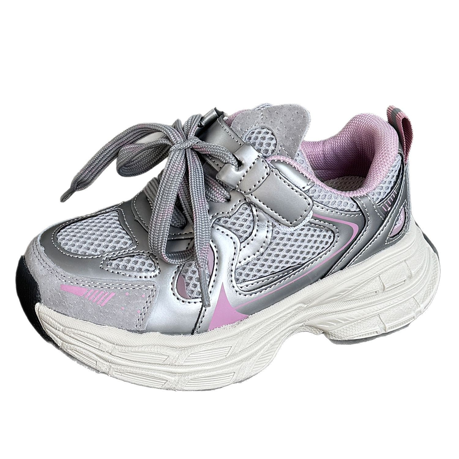 女童运动鞋2025春秋新款男童休闲鞋真皮透气网面耐磨儿童老爹鞋潮
