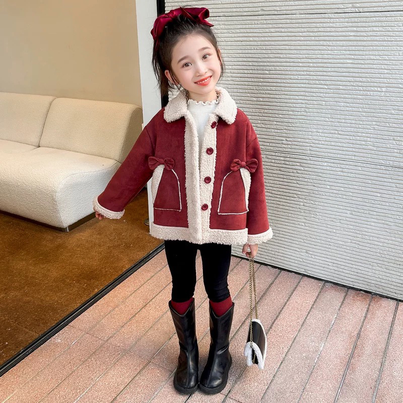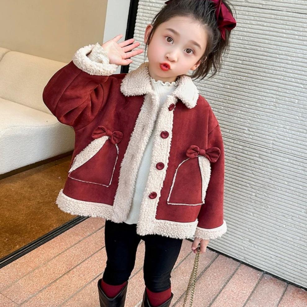 女童加绒加厚秋冬棉衣外套儿童冬季洋气上衣女宝宝红色礼服拜年服
