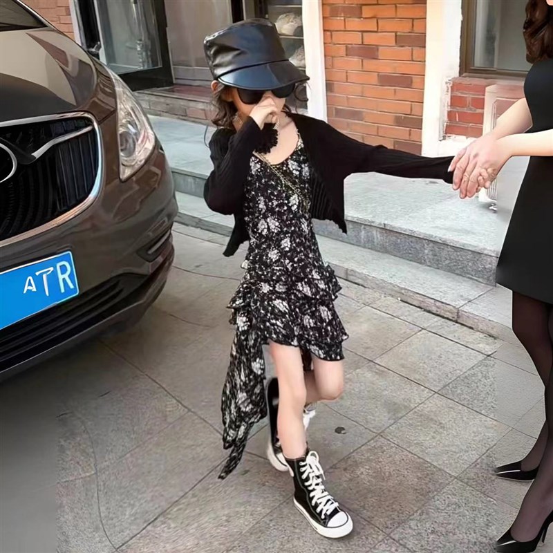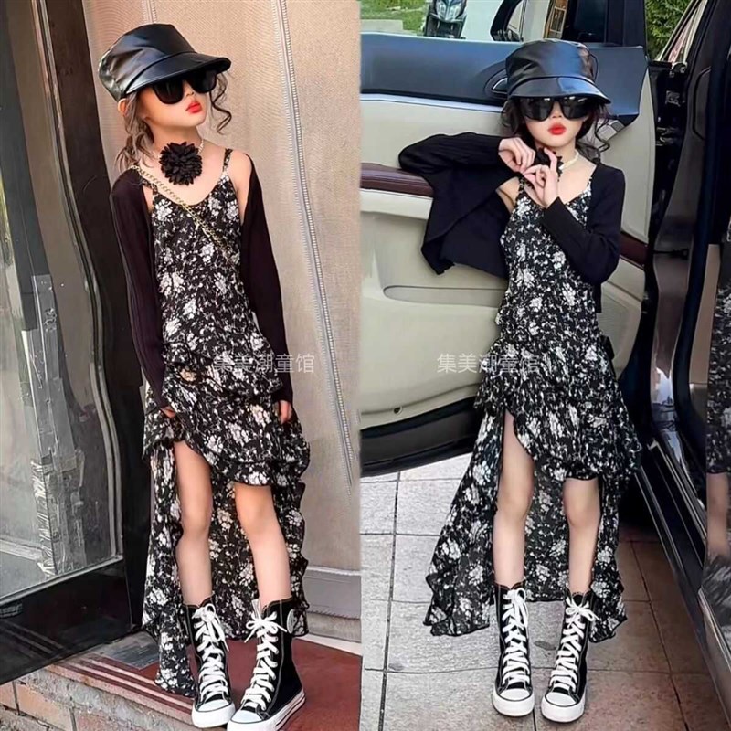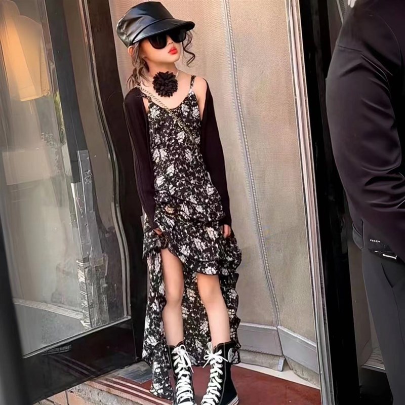 女童吊带裙夏季2025新款儿童夏装雪纺碎花裙子大童女孩网红连衣裙