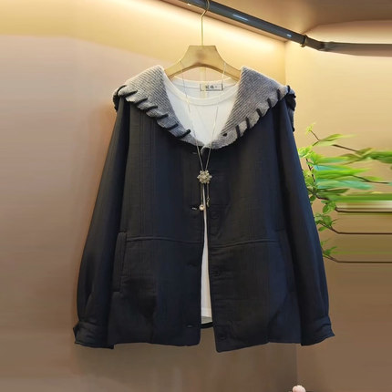 秋季新款韩版减龄翻领休闲轻薄款棉服外套大码女装胖mm宽松上衣女