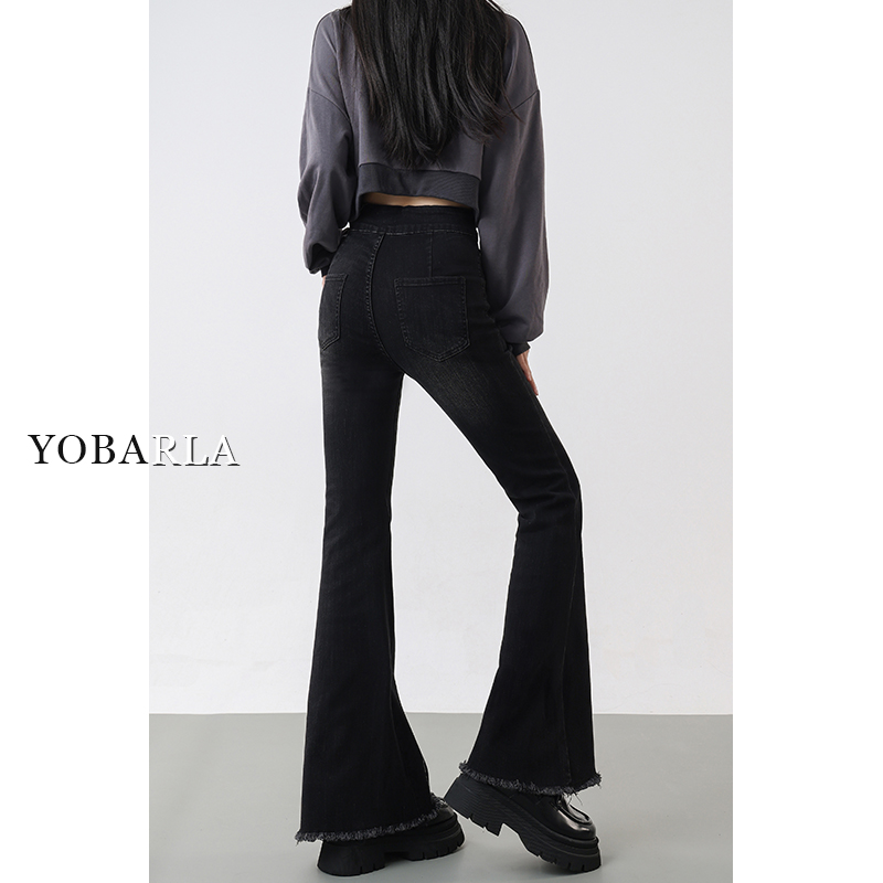 黑色微喇牛仔裤女秋季新款大码胖mm高腰弹力显瘦梨形身材喇叭裤子