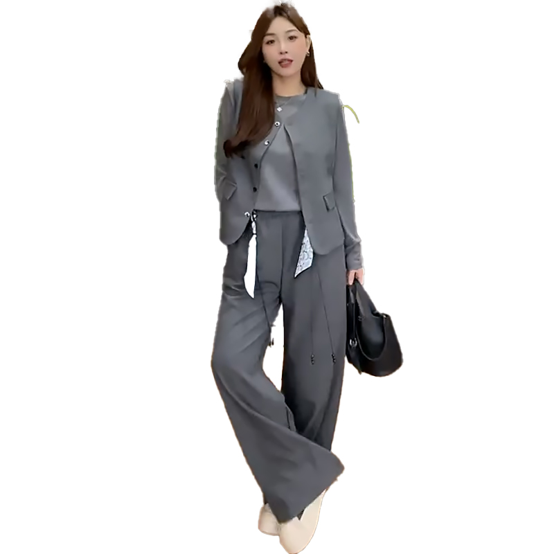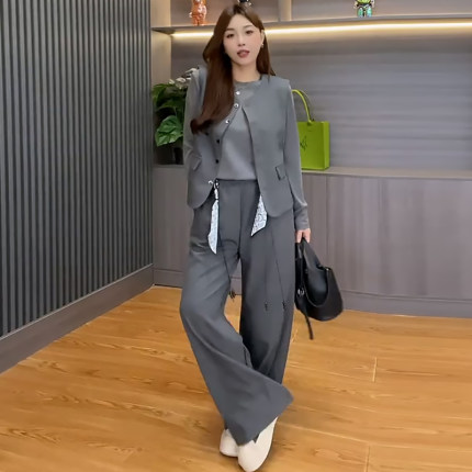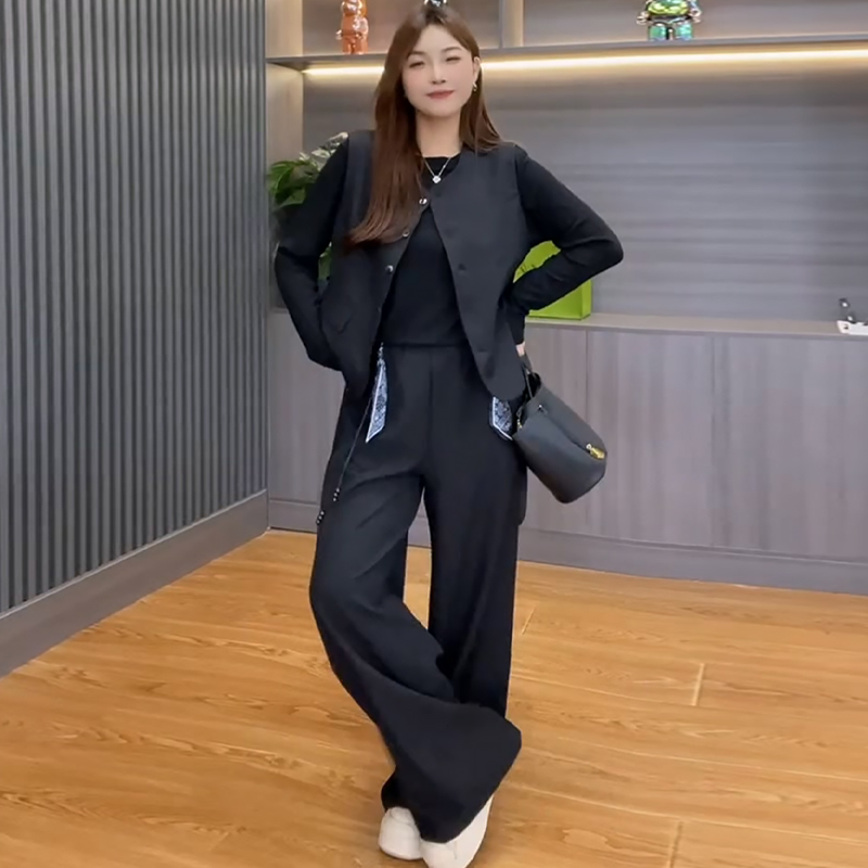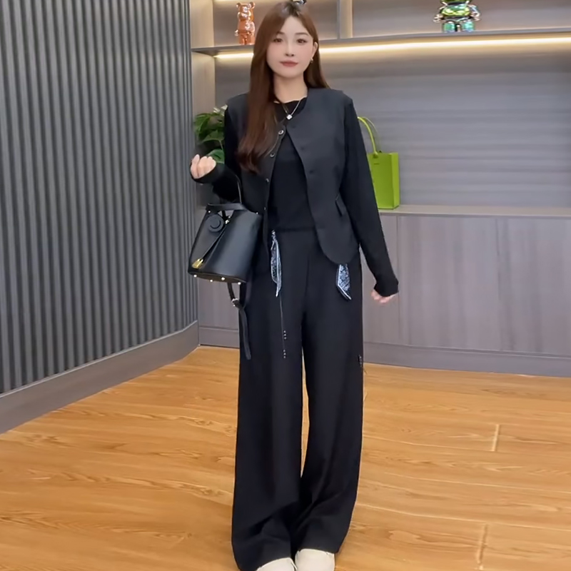 韩系气质马甲打底衫裤子三件套胖mm2025早秋新款显瘦宽松大码女装