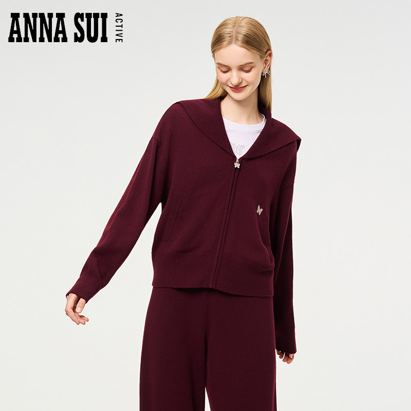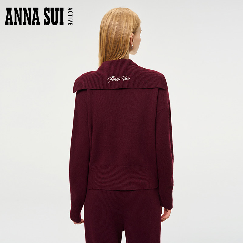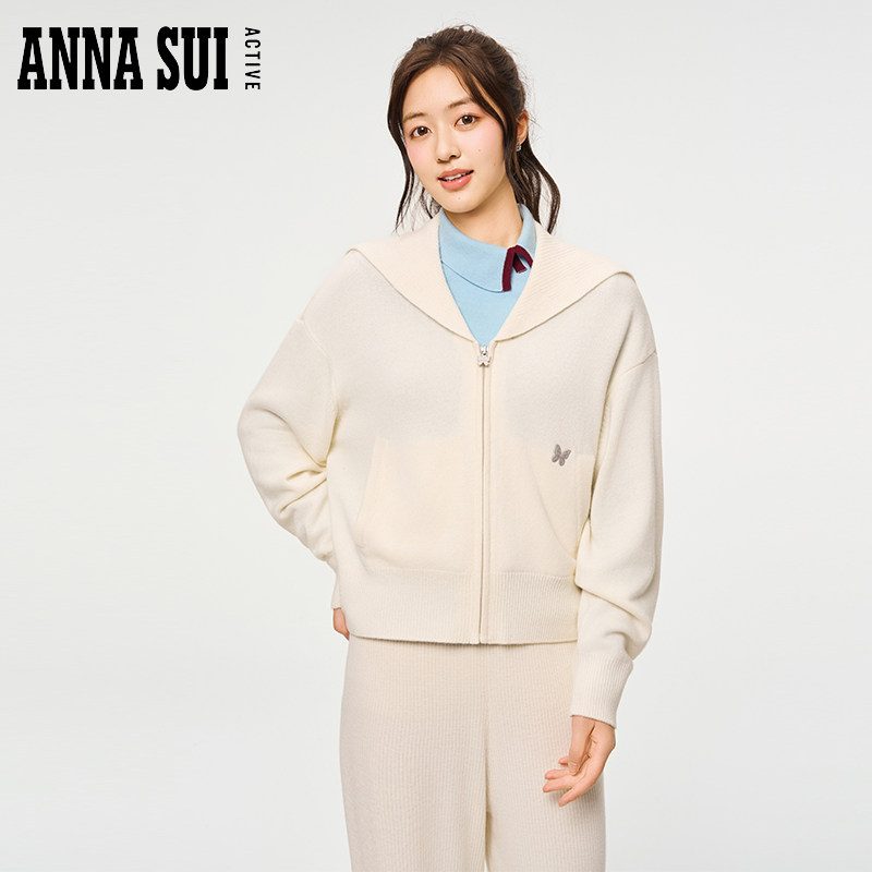 ANNA SUI安娜苏运动 美丽诺羊毛复古水手领针织长袖外套舒适亲肤