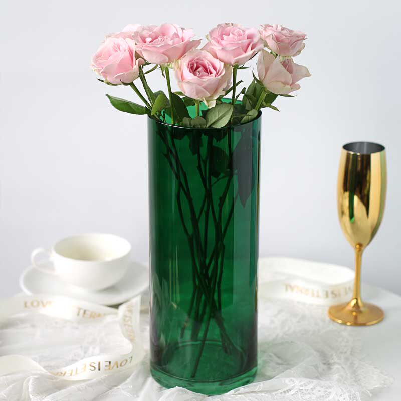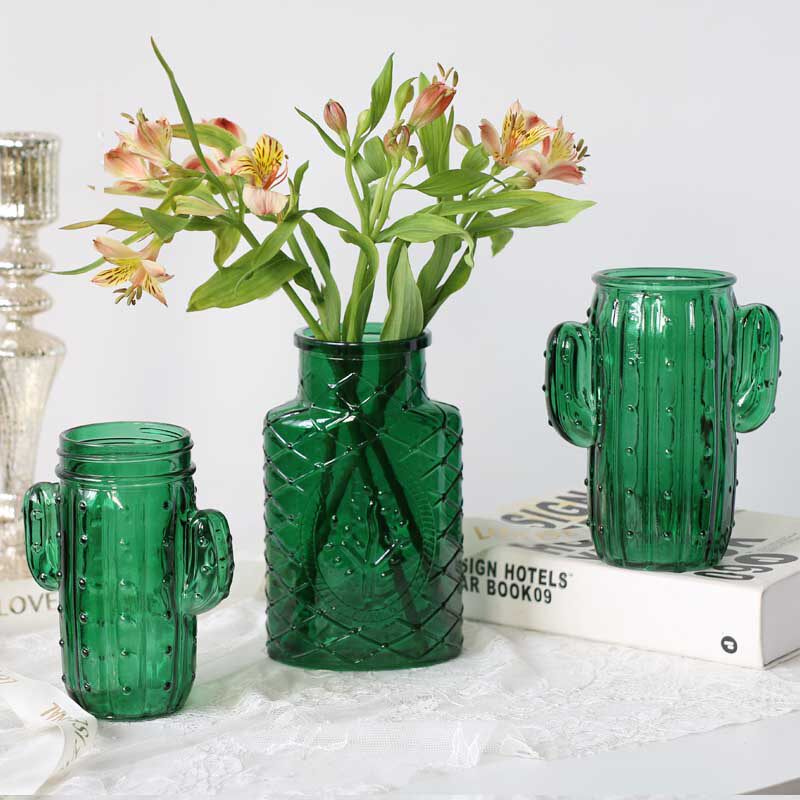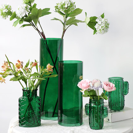 复古森系绿色玻璃花瓶美式祖母绿富贵竹插花高级感样板间客厅装饰