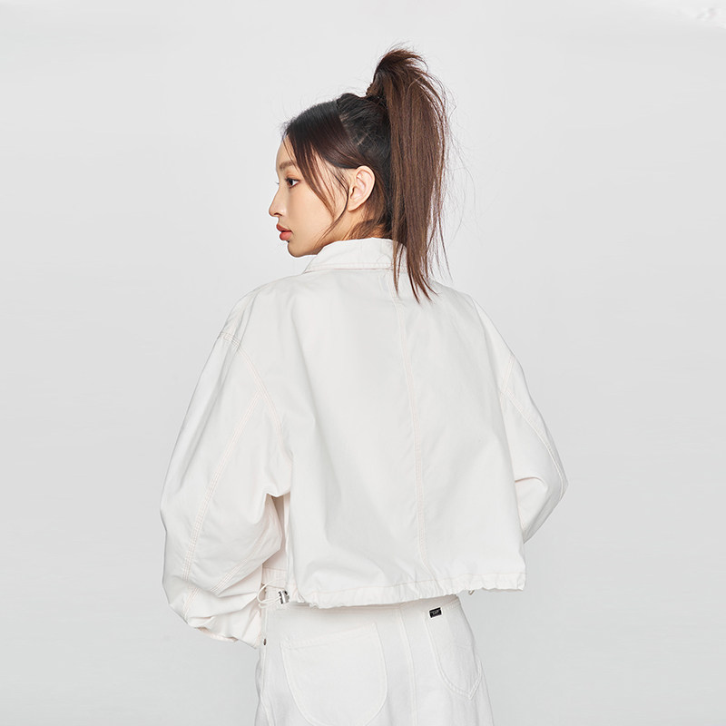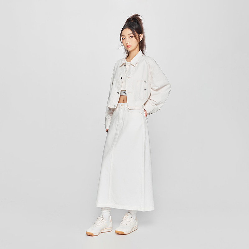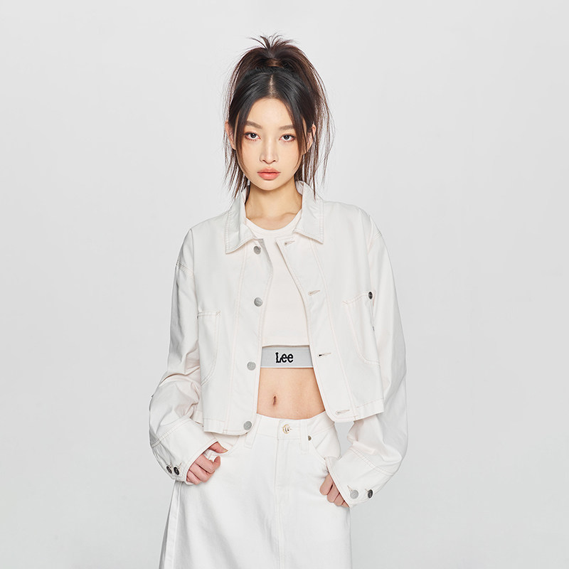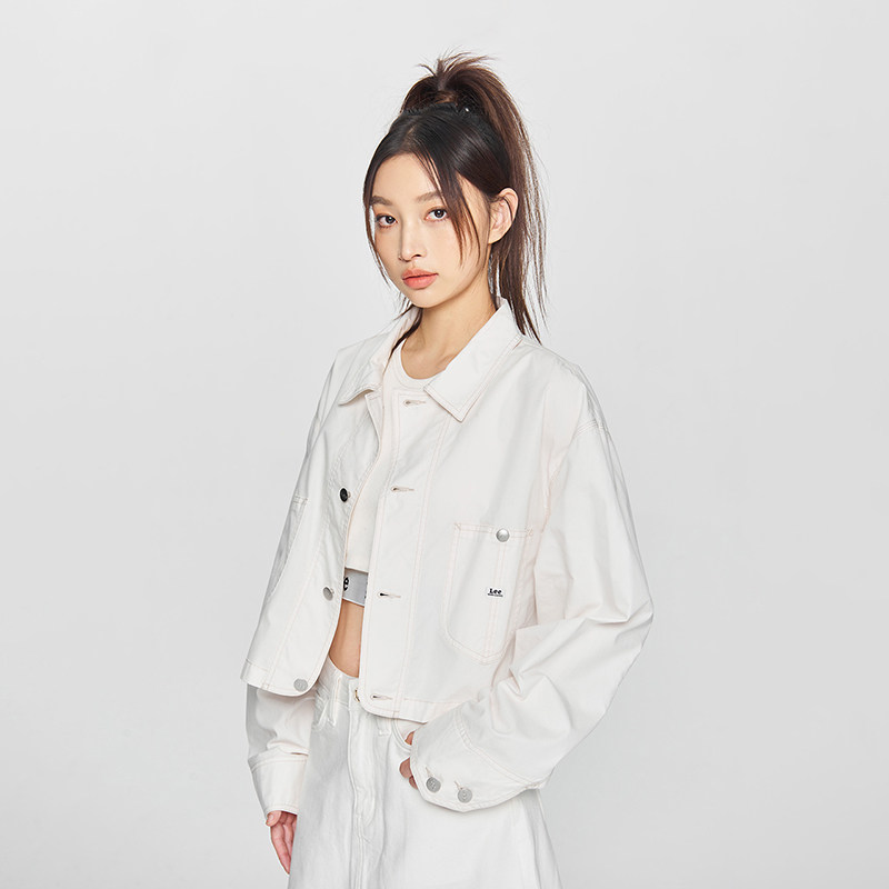 Lee商场同款25新品舒适版翻领织标Logo短款米白色女夹克外套休闲