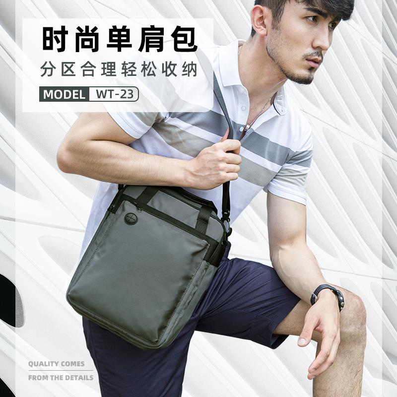 智行者男士休闲斜挎包男包单肩包大容量商务手提包多功能帆布背包