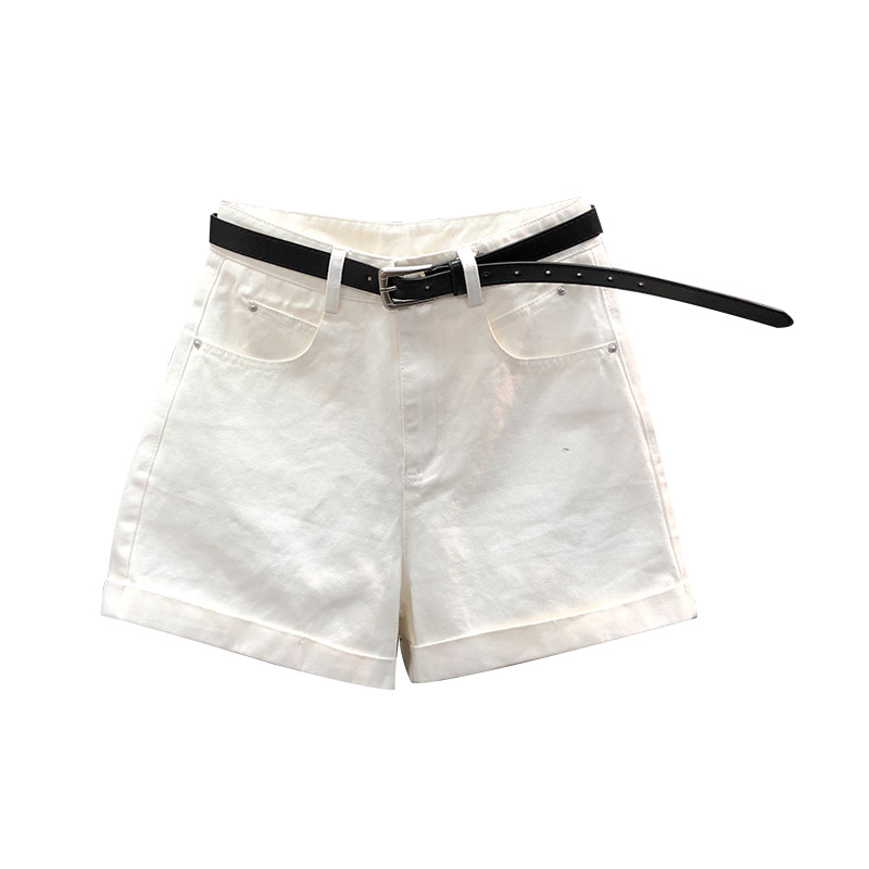 韩版白色高腰休闲牛仔短裤女2025夏季时尚宽松洋气A字卷边阔腿裤