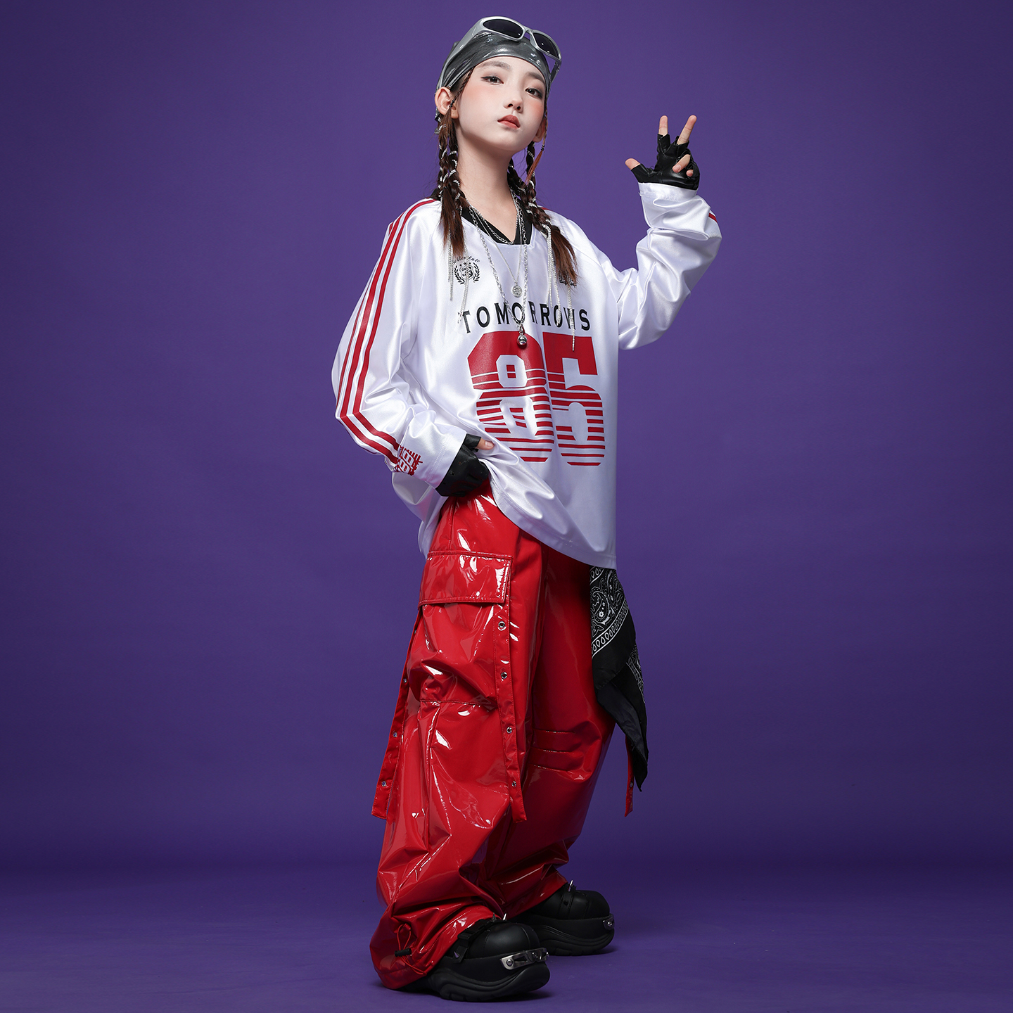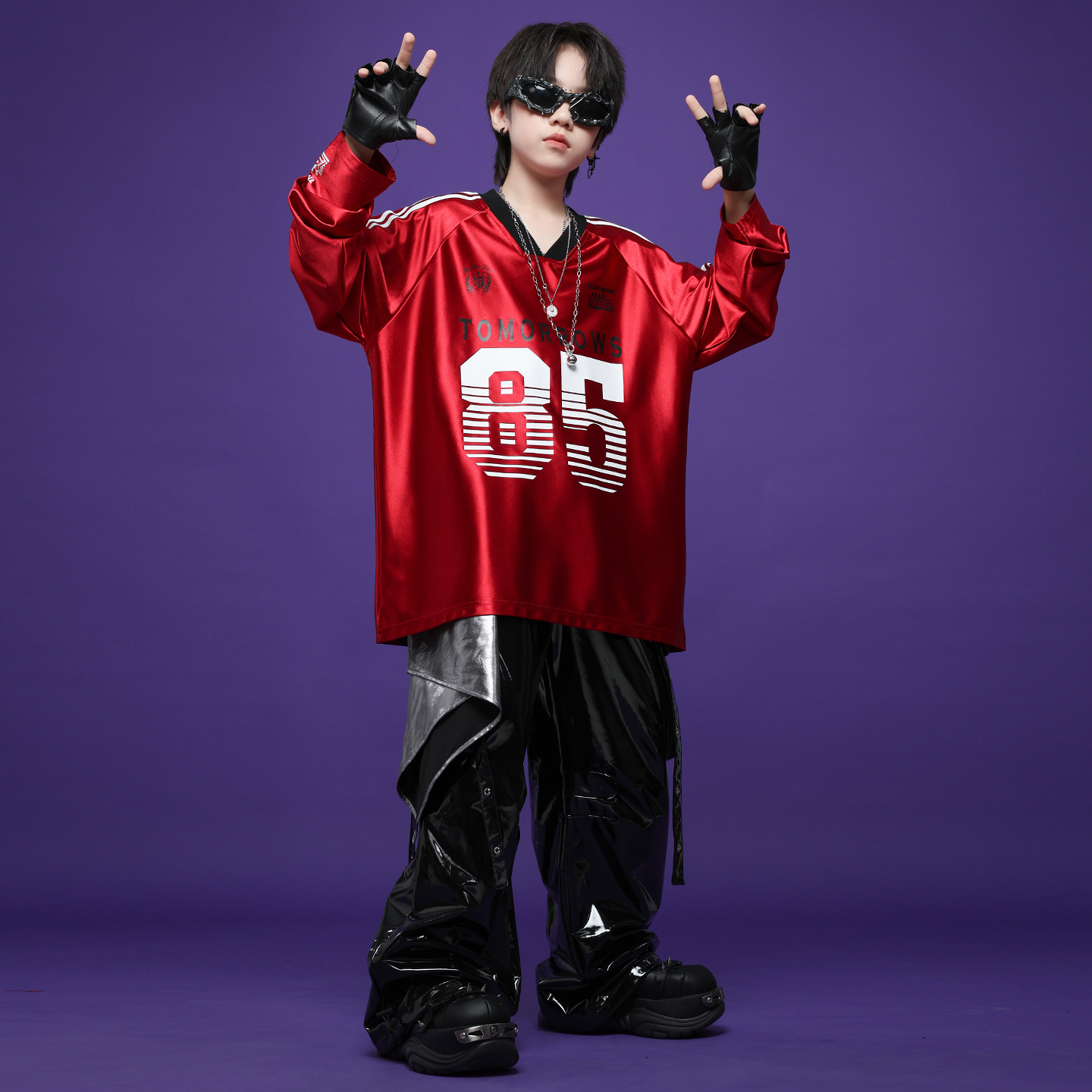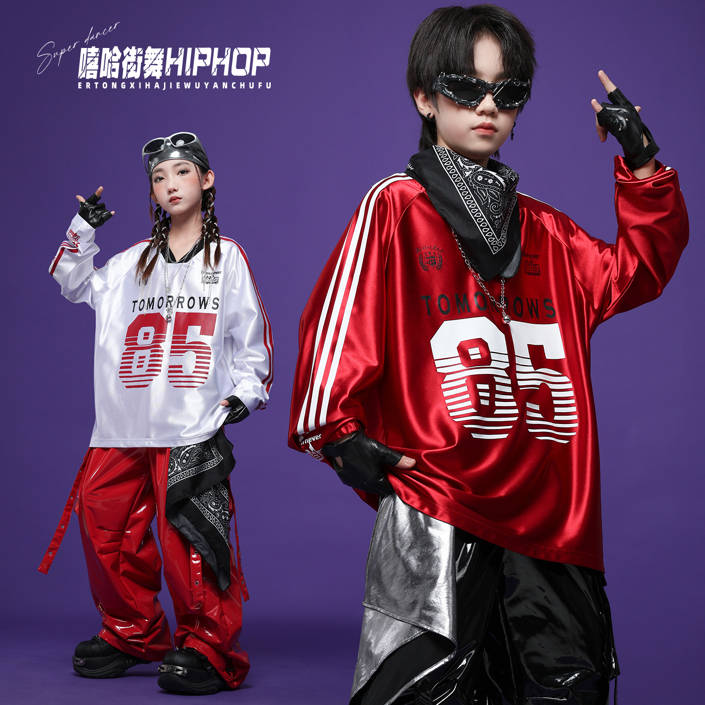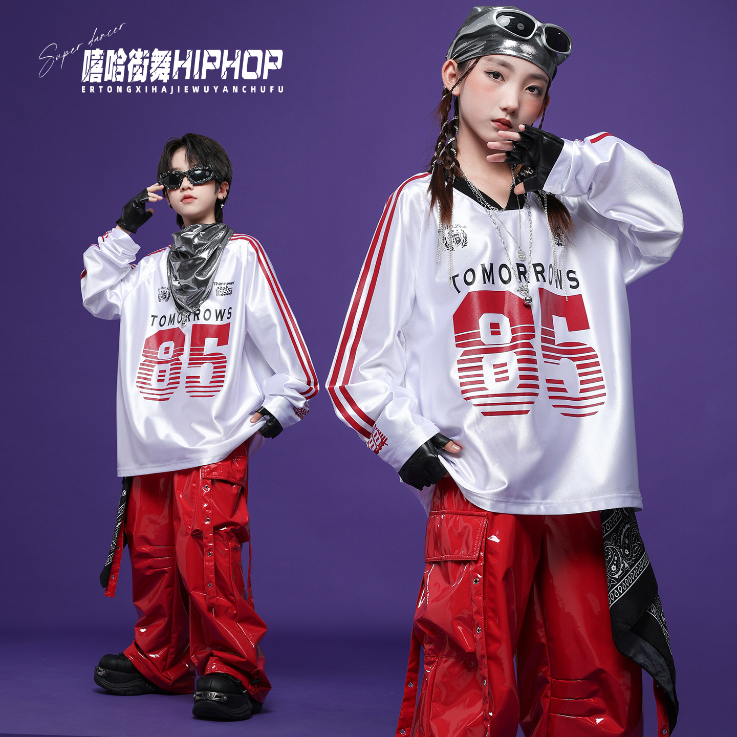 儿童炫酷街舞演出潮服少儿嘻哈hiphop工装皮裤男女童架子鼓表演服