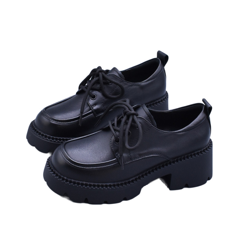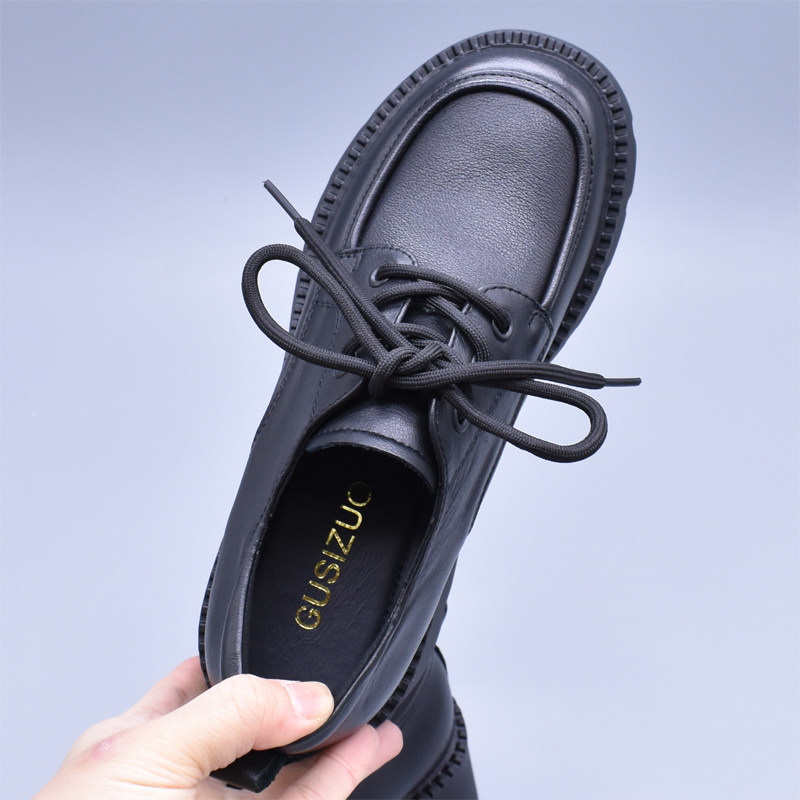 厚底百搭韩版修脚圆头女单鞋英伦复古学院牛津学生头层牛皮小皮鞋