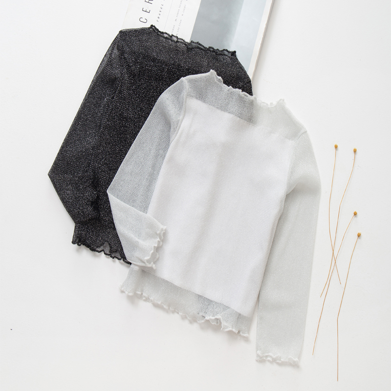 女童蕾丝打底衫韩新春秋薄款亮片儿童网纱上衣女外穿公主长袖T恤