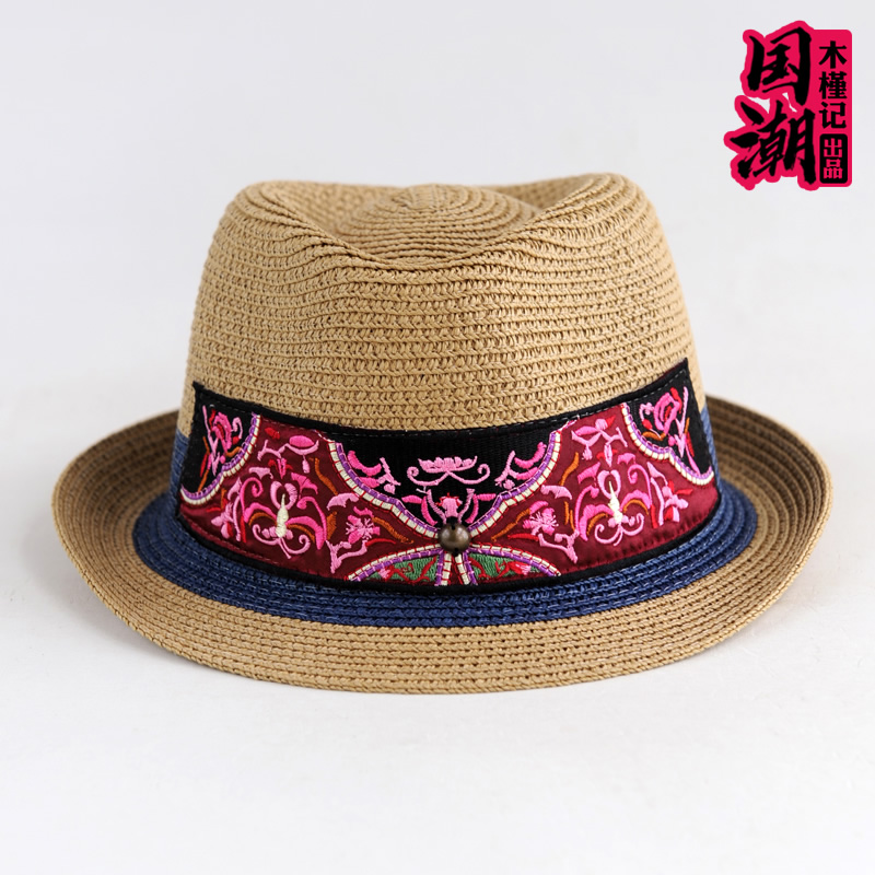爵士帽出游民族风女春夏短檐刺绣