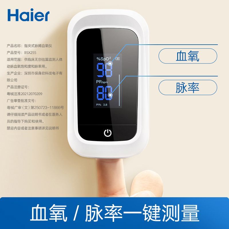 海尔医用血氧仪手指夹式血氧饱和度检测计家用指脉氧器心率监测仪