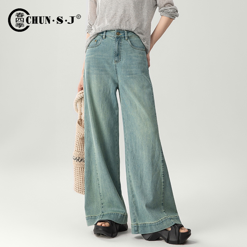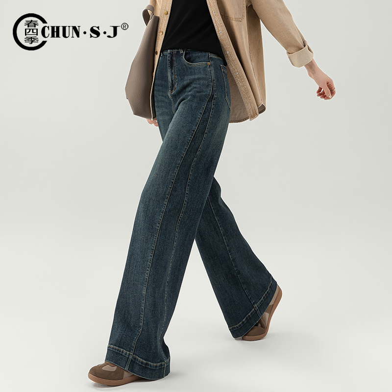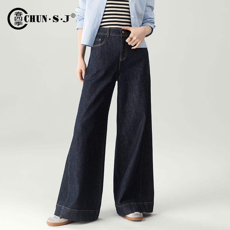 时尚A版丹宁牛仔裤宽松阔腿裤女2025新款秋季休闲拖地宽腿裤长裤