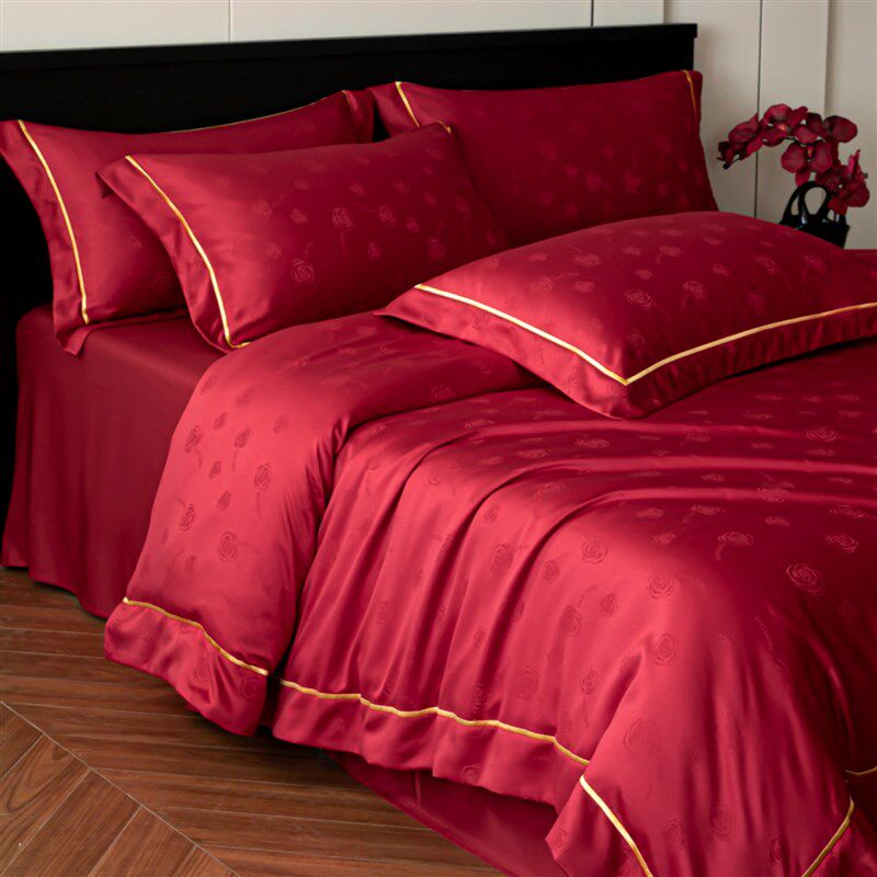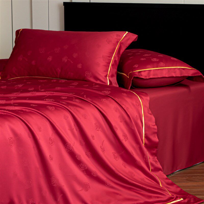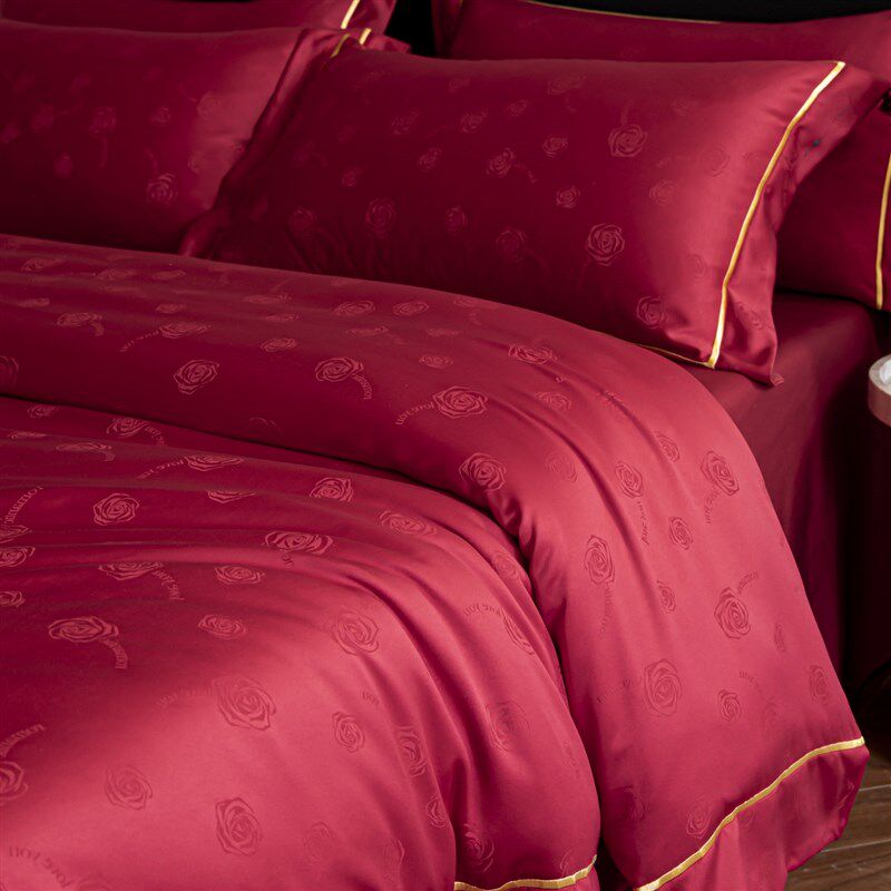 高档浪漫玫瑰提花结婚四件套婚庆红色被套床单陪嫁新婚房喜被床品